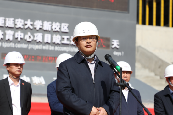 延安大學(xué)黨委委員、副校長(zhǎng)楊偉宏致辭,他代表延安大學(xué)全體師生向疫情期間奮戰(zhàn)在一線的施工人員及陜建集團(tuán)表示衷心感謝,對(duì)十三建公司承建的延大體育中心項(xiàng)目建設(shè)給予充分肯定。他指出,延安大學(xué)體育中心項(xiàng)目作為十四運(yùn)重點(diǎn)建設(shè)項(xiàng)目,意義重大。當(dāng)前,項(xiàng)目建設(shè)進(jìn)入60天倒計(jì)時(shí),希望全體參建人員從延安精神中汲取力量,大力弘揚(yáng)愛(ài)崗敬業(yè)、艱苦奮斗的勞模精神,進(jìn)一步統(tǒng)一思想,提高認(rèn)識(shí),鼓足干勁,用一流的速度,一流的品質(zhì),展現(xiàn)陜建集團(tuán)的國(guó)企風(fēng)采和責(zé)任擔(dān)當(dāng),為第十四屆全運(yùn)會(huì)順利召開(kāi)貢獻(xiàn)力量。