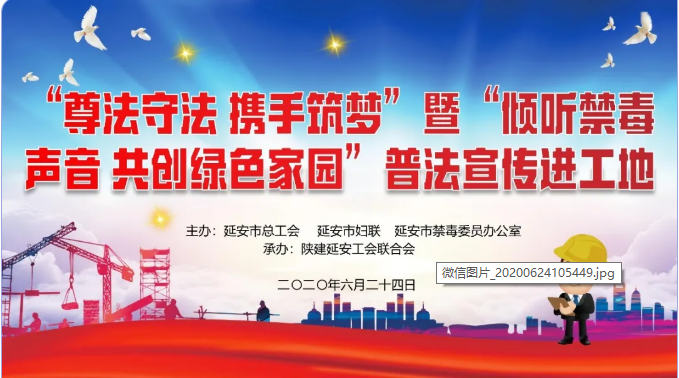 在第33個國際禁毒日來臨之際,為全面貫徹落實習(xí)近平新時代中國特色社會主義思想和習(xí)近平總書記關(guān)于禁毒工作重要指示精神,切實提高農(nóng)民工法律意識和禁毒意識,6月24日,由延安市總工會、市婦聯(lián)、市禁毒委員辦公室主辦,陜建延安工會聯(lián)合會承辦的“尊法守法 攜手筑夢”暨“傾聽禁毒聲音 共創(chuàng)綠色家園”普法宣傳教育活動在陜建十三建公司延安市新區(qū)信天游文創(chuàng)餐飲街項目舉行。