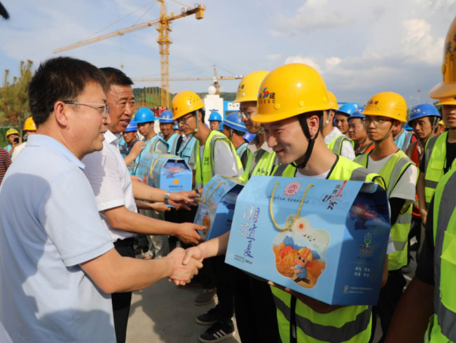 8月10日,延安市政協(xié)副主席、市總工會(huì)黨組書(shū)記、主席黑樹(shù)林一行來(lái)到陜建十三建公司南泥灣紅色文化小鎮(zhèn)項(xiàng)目慰問(wèn)項(xiàng)目一線建設(shè)者,為他們送去茶葉、蜂蜜、綠豆、小米等防暑降溫物品。市總工會(huì)副主席、女職委主任鄭艷霞,南泥灣開(kāi)發(fā)區(qū)黨工委副書(shū)記折克銀,市總工會(huì)辦公室副主任、困難職工幫扶中心主任惠瑞國(guó),市總工會(huì)辦公室副主任、宣教部負(fù)責(zé)人康靖華,陜建十三建公司紀(jì)委書(shū)記、工會(huì)主席張軍祥出席活動(dòng)。