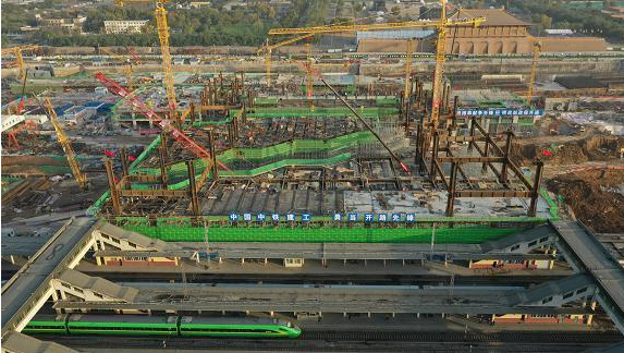 密集的腳手架上,施工人員正默契配合;大型基坑內(nèi),機械轟鳴不止。走進正在進行改擴建的西安火車站,記者看到一邊是既有的鐵軌上火車仍在穿梭,另一邊新建的站房等已經(jīng)初露芳容。