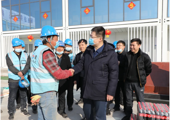 延安市委常委、常務(wù)副市長劉曉軍一行來到延安保稅物流中心(B型)項目,深入施工現(xiàn)場,詳細(xì)了解了施工現(xiàn)場布置、項目建設(shè)進(jìn)度、疫情防控措施以及春節(jié)期間工人“就地過年”安排等情況,并向堅守崗位的一線建設(shè)者致以節(jié)日的問候和祝福。