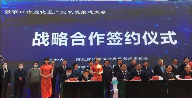 張家口市政府副市長李宏,宣化區(qū)委書記張聰,區(qū)委副書記、區(qū)長費再宏,宣化經(jīng)濟開發(fā)區(qū)黨工委書記、管委會主任李盛等出席會議。