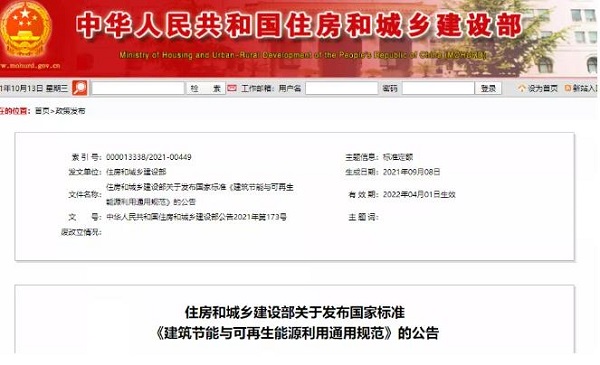 近日,住房和城鄉(xiāng)建設(shè)部發(fā)布國(guó)家標(biāo)準(zhǔn)《建筑節(jié)能與可再生能源利用通用規(guī)范》的公告。