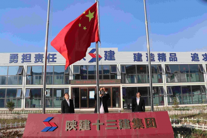 伴隨著第一縷晨光,鮮艷的五星紅旗冉冉升起,雄壯的《義勇軍進行曲》,既唱出了中華兒女萬眾一心、奮勇前進、永不屈服的決心,更唱出了陜建十三建集團全體員工扎根圣地延安,砥礪奮發(fā)前行的堅定信心!