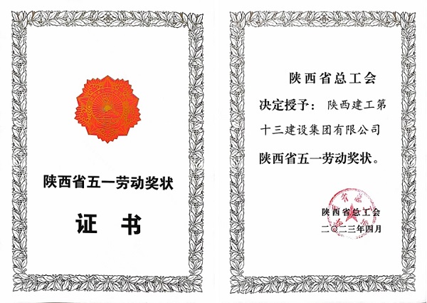 陜建十三建集團(tuán)榮獲“陜西省五一勞動(dòng)獎(jiǎng)狀”