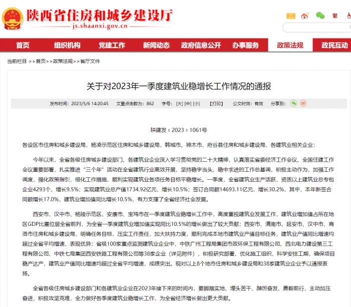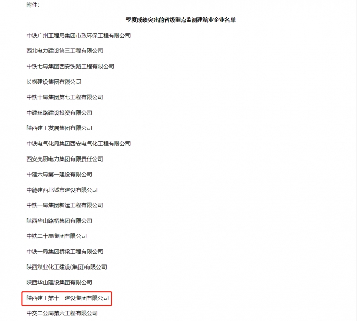 近日,陜西省住建廳通報了2023年一季度建筑業(yè)穩(wěn)增長工作情況。陜西建工第十三建設集團有限公司等38家建筑業(yè)企業(yè)受表揚,被評為一季度成績突出的省級重點監(jiān)測建筑業(yè)企業(yè)。