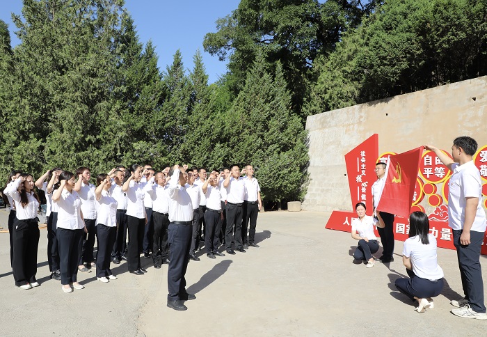 在楊家?guī)X革命舊址,集團(tuán)黨委書記、董事長卜國平帶領(lǐng)全體黨員,面對黨旗高舉右手,齊肩握拳,再次莊嚴(yán)宣誓。“我志愿加入中國共產(chǎn)黨……隨時準(zhǔn)備為黨和人民犧牲一切,永不叛黨?!辩H鏘恢宏的誓詞,聲聲震耳,強(qiáng)烈震撼著在場的每一位黨員,一字一句,神圣而豪邁,充分體現(xiàn)了黨員同志們對中國共產(chǎn)黨的無限忠誠和熱愛。隨后,在講解員的引導(dǎo)下,大家先后參觀中央大禮堂,毛澤東、朱德、周恩來等老一輩無產(chǎn)階級革命家故居,了解了黨的七大的歷史背景、會議過程和重要意義,重溫艱苦奮斗、自力更生的延安精神。