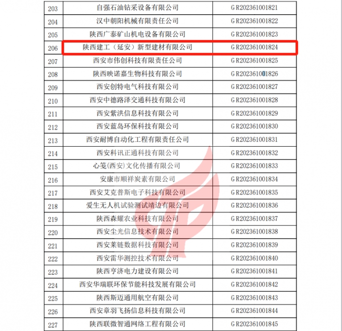 近日,全國(guó)高新技術(shù)產(chǎn)業(yè)企業(yè)認(rèn)定管理工作領(lǐng)導(dǎo)小組辦公室公布了2023年陜西省認(rèn)定的第一批高新技術(shù)企業(yè)名單,集團(tuán)新型建材產(chǎn)業(yè)基地【陜西建工(延安)新型建材有限公司】通過(guò)國(guó)家級(jí)高新技術(shù)企業(yè)認(rèn)定。