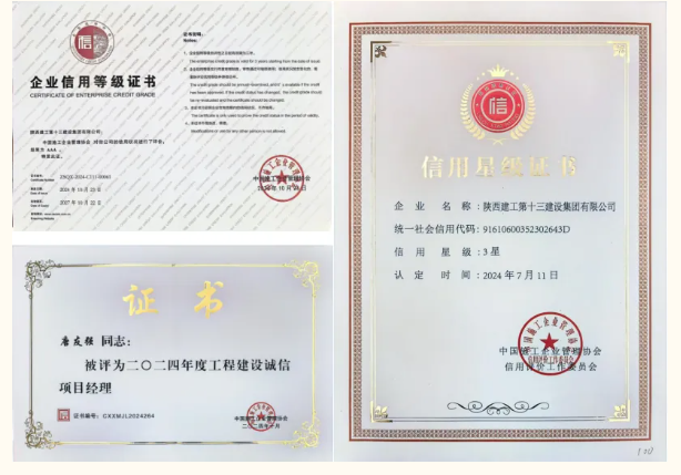 近年來,陜建十三建集團(tuán)高度重視企業(yè)信用建設(shè),堅持把誠信經(jīng)營作為企業(yè)高質(zhì)量發(fā)展的基石,秉承“敬業(yè)守信、勇?lián)?zé)任、建造精品、追求卓越”的企業(yè)精神,在堅定屬地市場的同時持續(xù)開拓域外市場,不斷壯大主業(yè)規(guī)模,樹立良好的口碑和品牌形象;踐行“四新”戰(zhàn)略,拓展新領(lǐng)域、新業(yè)態(tài),助推企業(yè)轉(zhuǎn)型升級和高質(zhì)量發(fā)展;加強(qiáng)工程項目精細(xì)化管理,守好安全底線,嚴(yán)把質(zhì)量關(guān),推動項目實(shí)現(xiàn)優(yōu)質(zhì)履約;提升內(nèi)控工作水平,強(qiáng)化制度建設(shè)與風(fēng)險防控,保障企業(yè)規(guī)范平穩(wěn)運(yùn)行。集團(tuán)先后榮獲延安市建筑業(yè)AAA級信用企業(yè)、陜西省信用協(xié)會信用建設(shè)先進(jìn)單位。